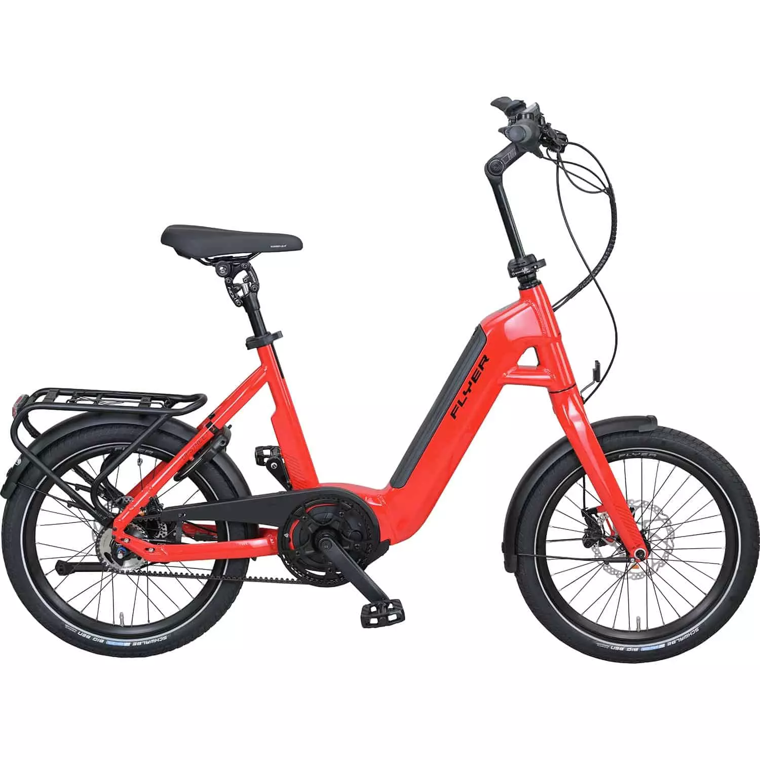 kompakte 20″ Laufräder und einen tiefen Comfort Rahmen,